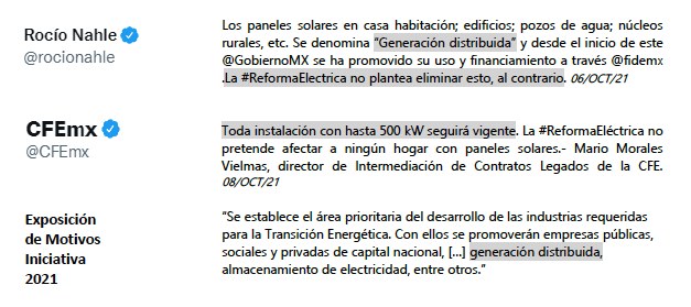 La opinión pública es distinta, ya que principales medios de comunicación incluyeron los paneles solares centralizados y distribuidos dentro de la misma categoría. No distinguieron los contratos de compraventa entre privados de los contratos de interconexión con medición neta. Y por último, confundieron autoabasto con abasto aislado y autogeneración.